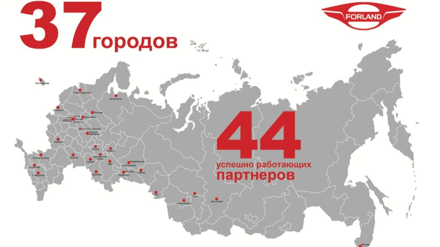 На сегодняшний день дилерские центры FORLAND успешно работают в Центральном, Уральском, Сибирском, Северо-Западном, Приволжском, Дальневосточном и Южном федеральных округах. В ближайшие месяцы планируется открытие новых дилерских центров в Казани, Нижнем Новгороде и Уфе, что позволит укрепить присутствие бренда в крупных городах России.